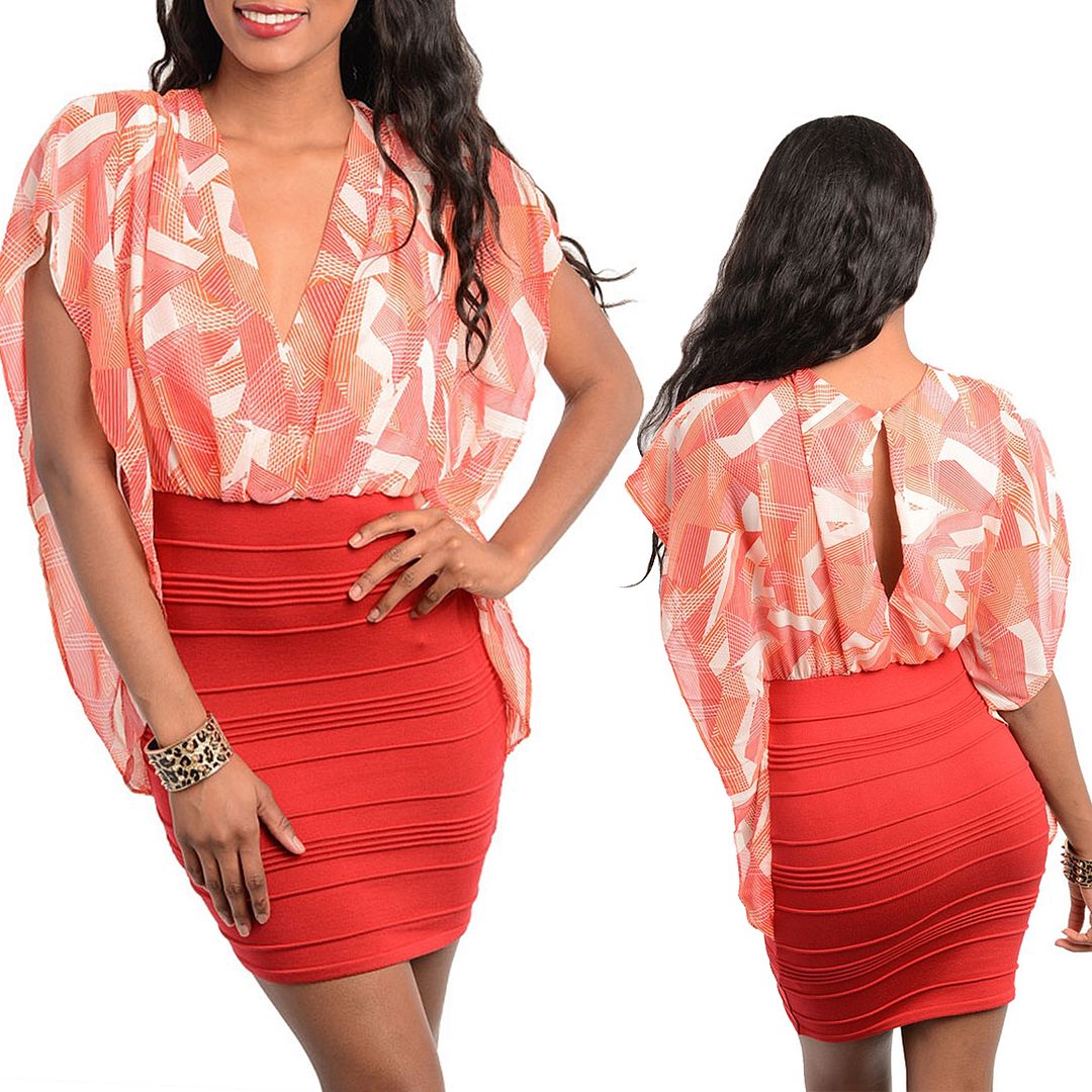Ladies Women Red Cocktail Party Butterly Skirt Dress